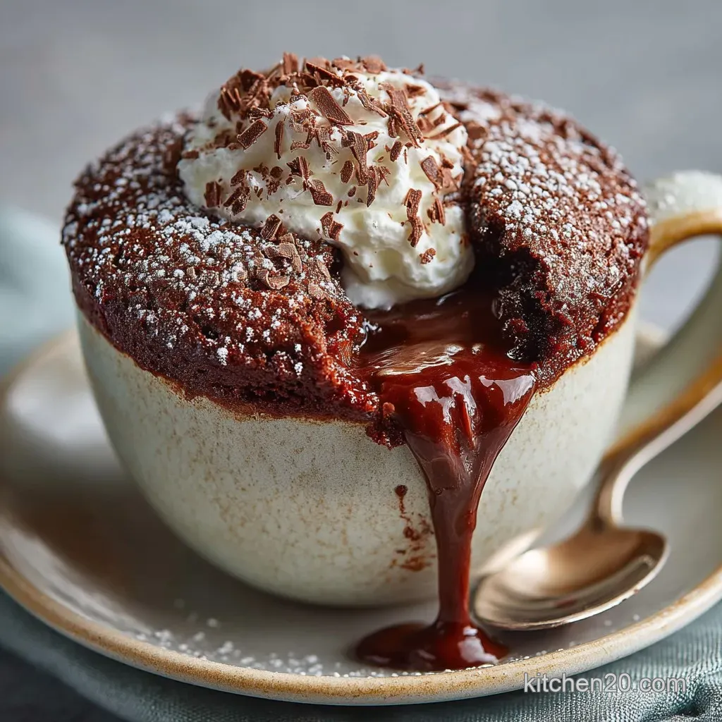 This warm, rich chocolate mug cake demands a contrasting topping. For an ultra-luxurious finish, consider a spoonful of homemade ganache or a sprinkle of flaky sea salt immediately after resting. However, the perfect companions involve temperature contrast: a large dollop of high-quality vanilla bean ice cream that instantly begins to melt into the warm cake, or a spoonful of whipped cream. For a touch of fruity acidity to cut the intense richness, fresh raspberries or a simple raspberry coulis are excellent choices.