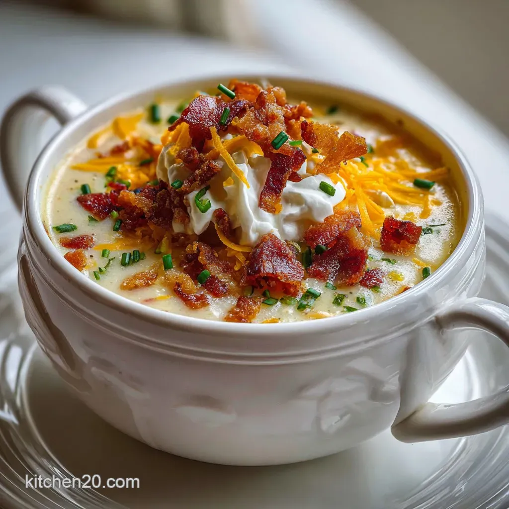 Add flavorful toppings and quality ingredients. Crispy bacon, sharp cheddar, fresh chives, and a good quality bone broth foundation elevate the soup significantly. If you enjoyed the richness of this soup, you might also love the depth of flavor in our Roasted Fingerling Potatoes with Craveable Sauce: The Ultra Crispy Umami Aioli Recipe.