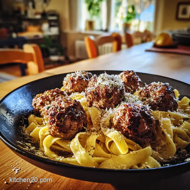 Juicy Garlic Butter Meatballs with Silky Parmesan Tagliatelle